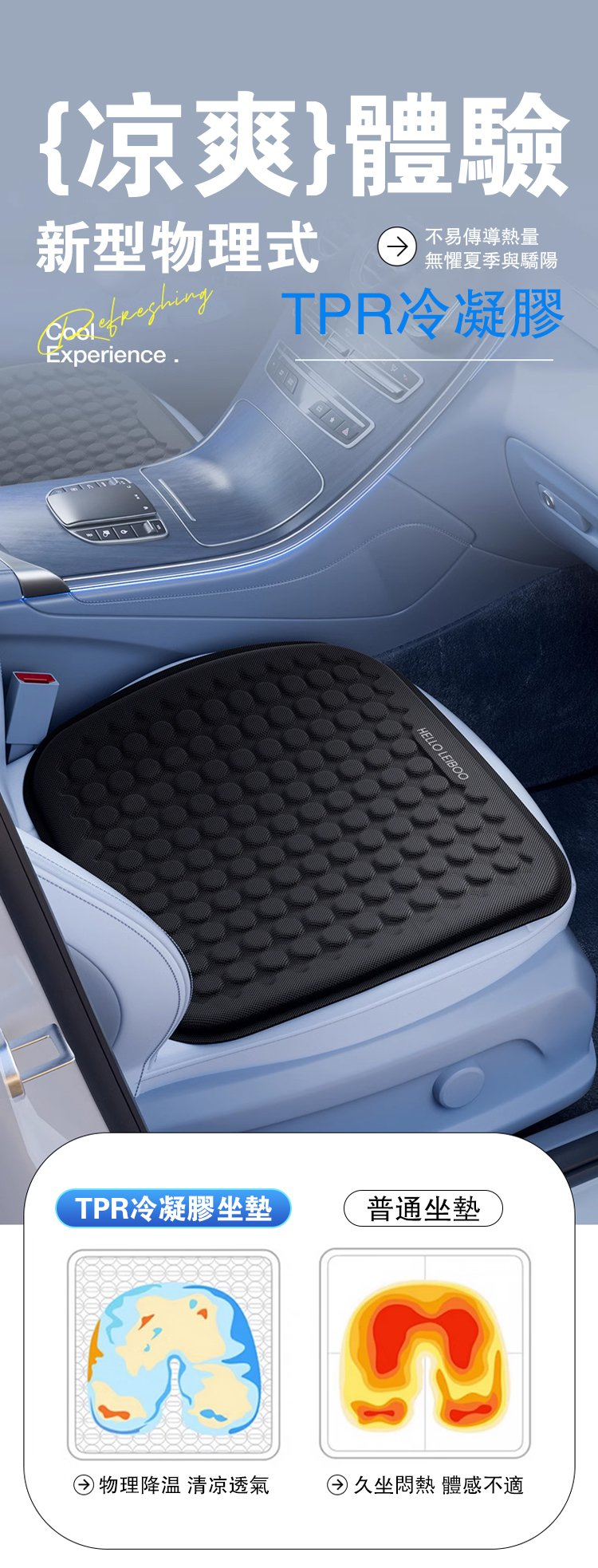 2分鐘前TPR冷凝膠降溫墊】❄溫度瞬降30℃防滑貼合座椅,冷凝膠隔熱技術,雙層製冷,四季通用~ - 【今日特價】1入組 NT$1180