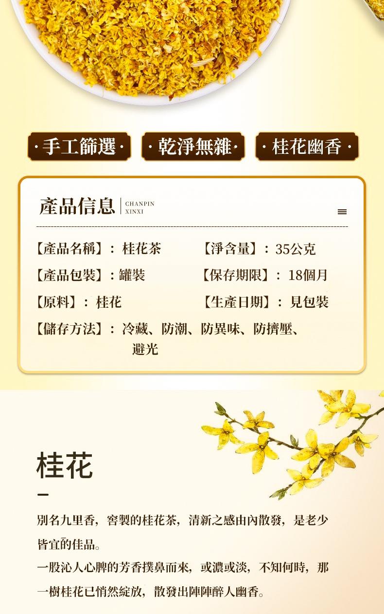 20分鐘前【年終超狂特惠 買1送1】台灣製作,無農藥,無添加劑,無熏硫,自然農法種植,美容養顏,緩解腸胃不適,消除口臭,綠色天然的養生佳品。一罐可沖泡50次。【下單贈送花茶過濾球】 - 【買一送一】今年新貨,兩瓶桂花乾-NT$ 1099